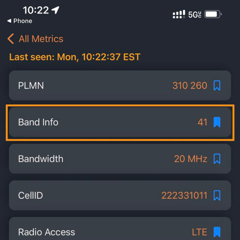 Now you will look for the Band Info cell. This will display the cellular band you’re currently using.
