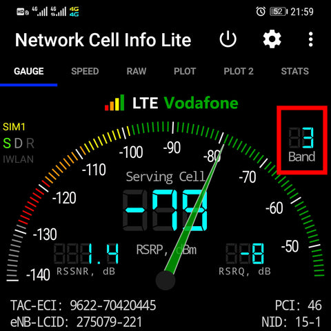Launch the LTE Discovery App, then tap GAUGE and look for Band