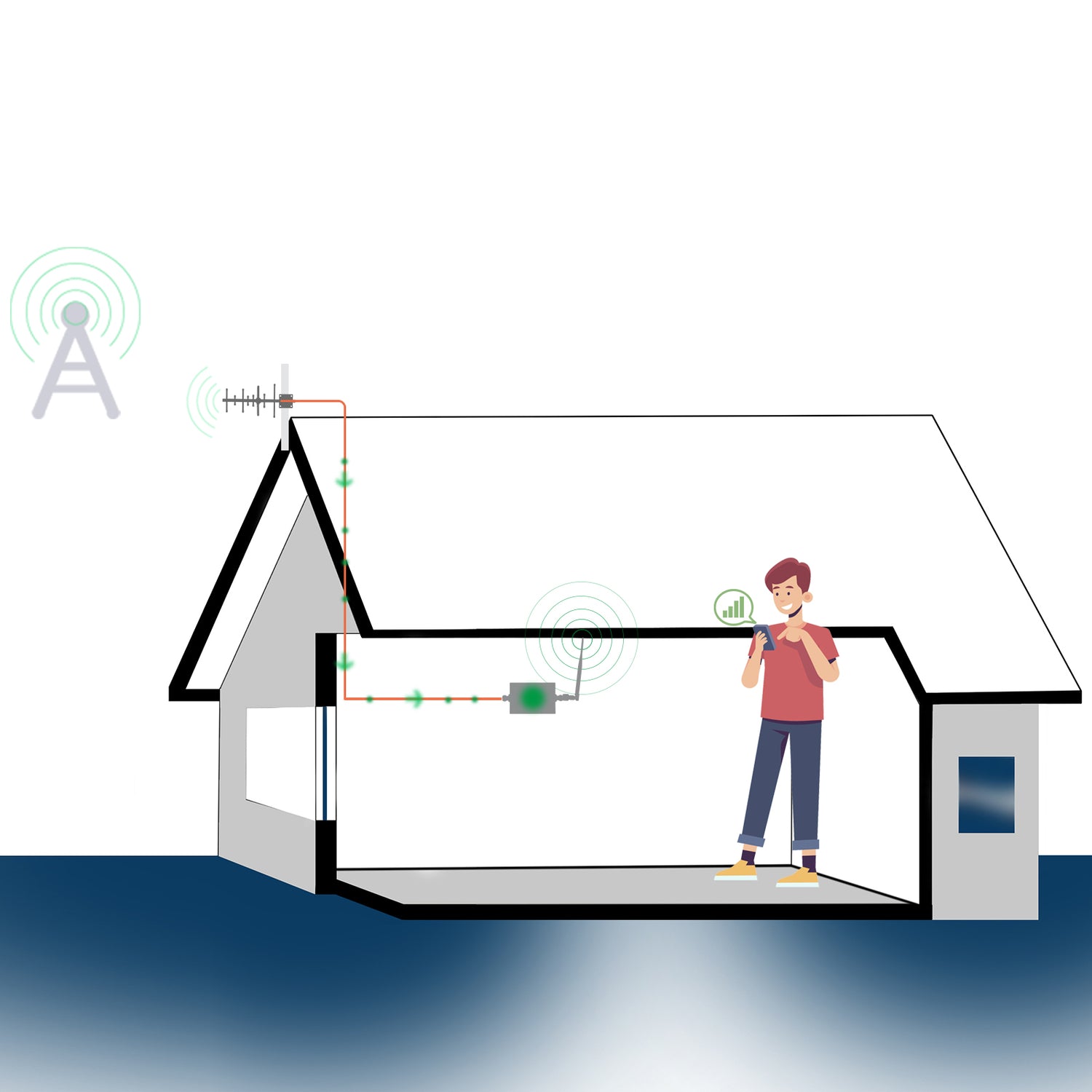 2.Outside antenna transmit received signal to repeater by coaxial cable, repeater amplifies and transmit it to indoor antenna