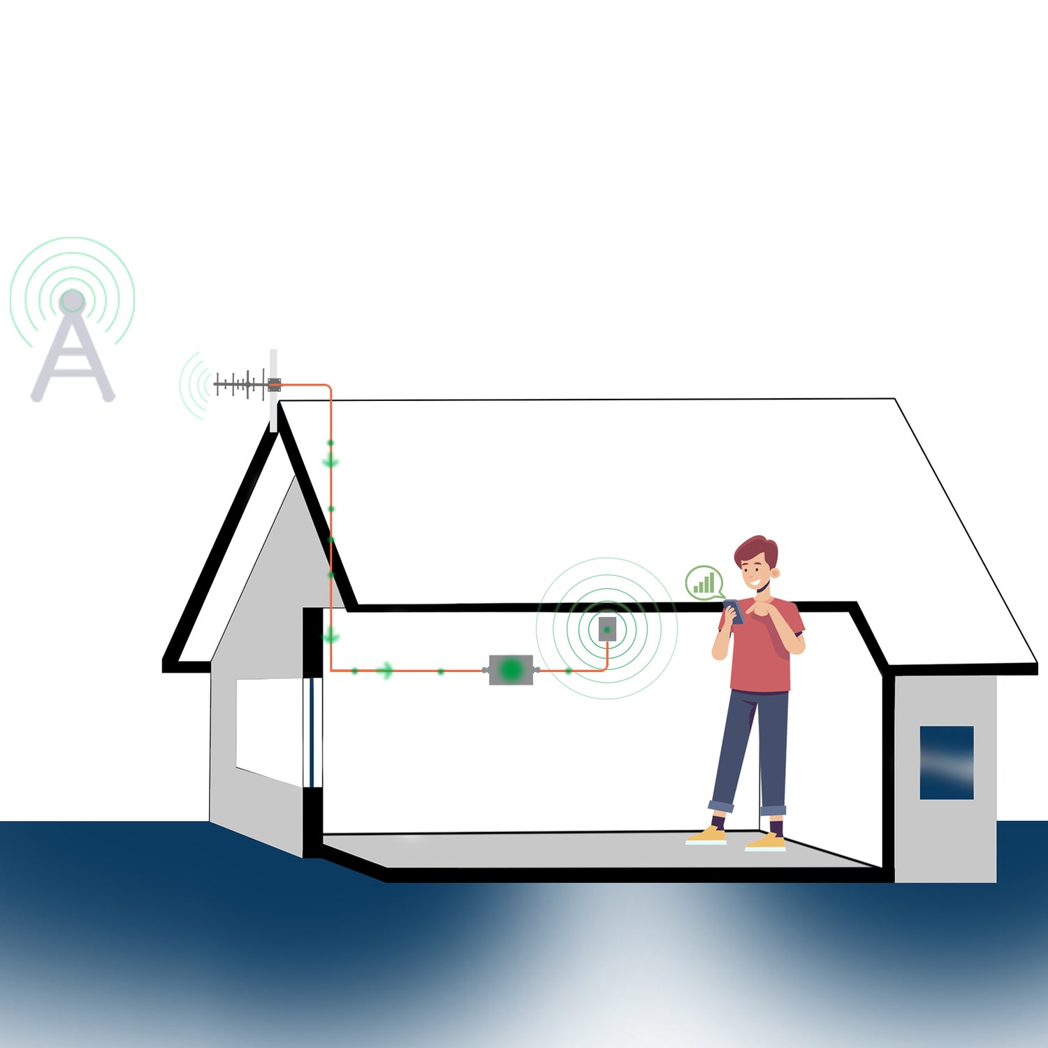 2.Outdoor antenna transmit received signal to repeater by coaxial cable, repeater amplifies and transmit it to indoor antenna