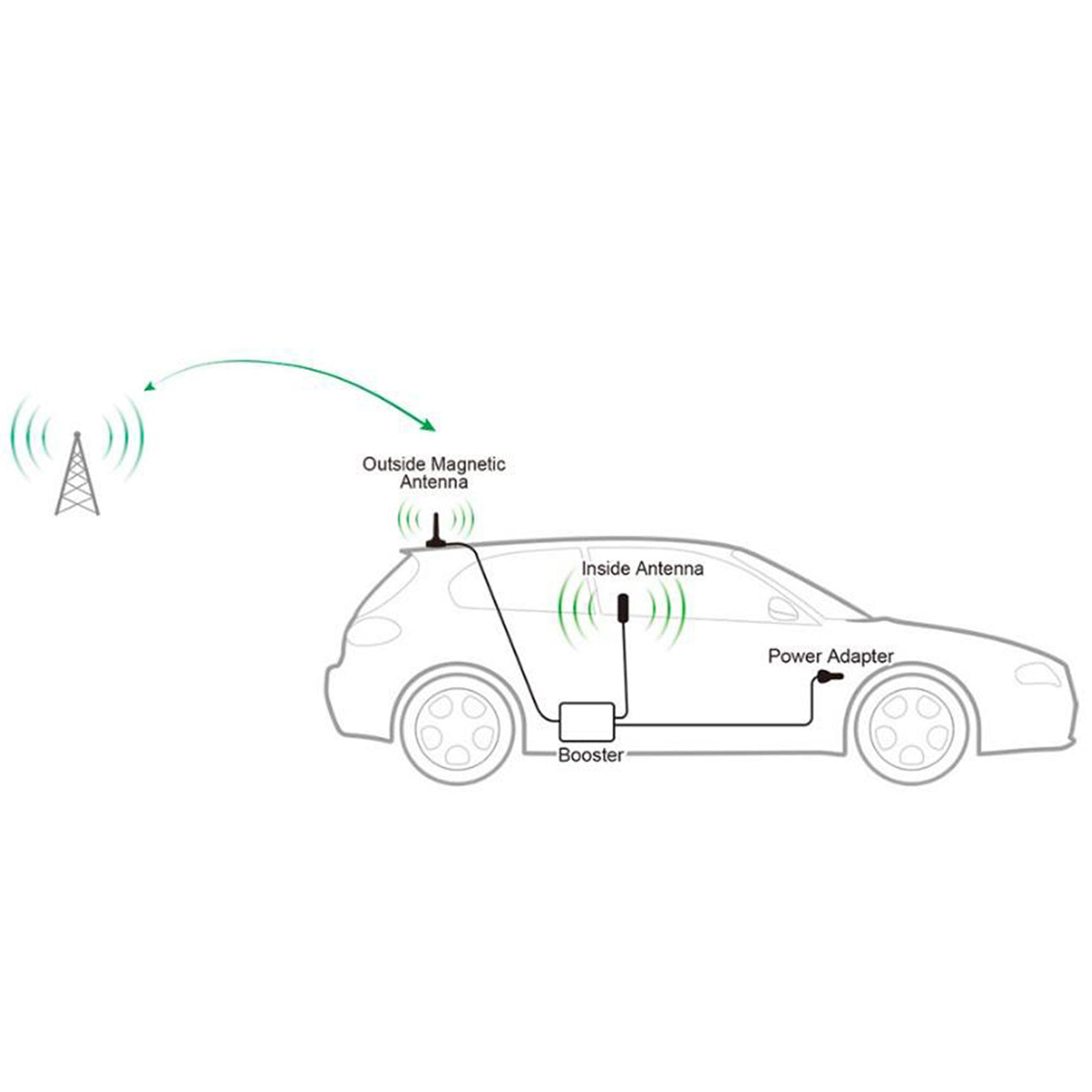 3️⃣ Inside Antenna Rebroadcasts the Signal – A small antenna inside the vehicle distributes the boosted signal, ensuring stronger reception for all connected devices.