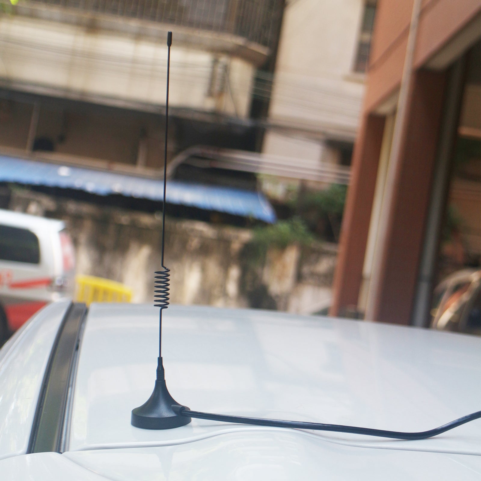1️⃣ Outside Antenna Captures the Signal -An antenna mounted outside the vehicle detects weak mobile signals from nearby cell towers.